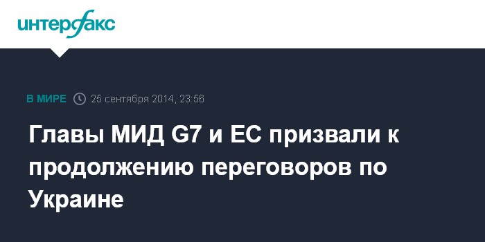 Москва. 25 сентября. INTERFAX.RU - Страны-члены G7 выступают за продолжение трехсторонних переговоров между Украиной, Россией и Евросоюзом для поиска способов урегулирования украинского конфликта, говорится в совместном заявлении глав МИД стран "семерки" и главы дипломатии ЕС.