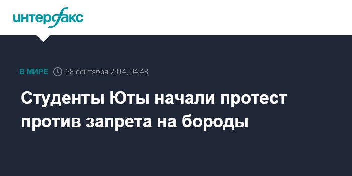 Москва. 28 сентября. INTERFAX.RU - Группа студентов университета Бригама Янга в городе Прово, штат Юта, начала акцию протеста против запрета для них на ношение бороды, сообщило в воскресенье агентство Associated Press.