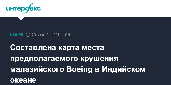 Составлена карта места предполагаемого крушения малазийского Boeing в Индийском океане