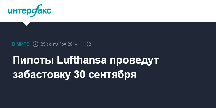 Пилоты Lufthansa проведут забастовку 30 сентября