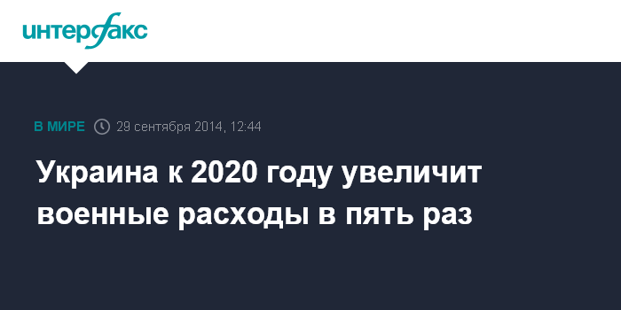 Москва. 29 сентября. INTERFAX.RU - Программа реформ "Стратегия-2020" предусматривает, что Украина должна стать "военным государством", увеличив за шесть лет военные расходы с 1% от ВВП до 5%, сообщил замглавы администрации президента Дмитрий Шимкив.