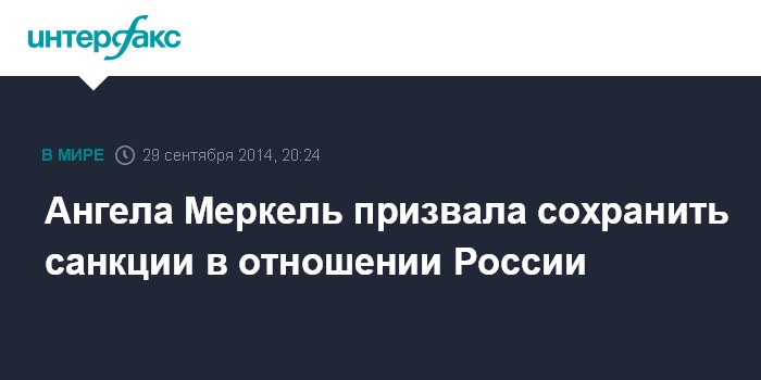 Москва. 29 сентября. INTERFAX.RU - Канцлер Германии Ангела Меркель в понедельник заявила, что ЕС пока не должен отменять санкции против России, введенные из-за ситуации на Украине.