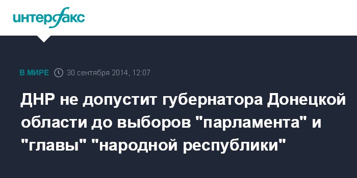 ДНР не допустит губернатора Донецкой области до выборов "парламента" и "главы" "народной республики"