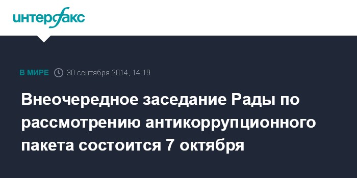 Внеочередное заседание Рады по рассмотрению антикоррупционного пакета состоится 7 октября