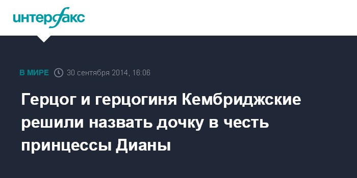 Москва. 30 сентября. INTERFAX.RU - Герцог и герцогиня Кембриджские определились с женским вариантом имени для ребенка, который появится на свет весной 2015 года, сообщает во вторник британская газета The Daily Mail.