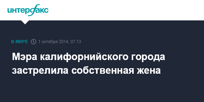 Москва. 1 октября. INTERFAX.RU - Мэр одного из пригородов Лос-Анджелеса, Белл-Гарденс, Даниэль Креспо был во вторник застрелен собственной женой во время домашней ссоры, сообщила газета The Los Angeles Times.