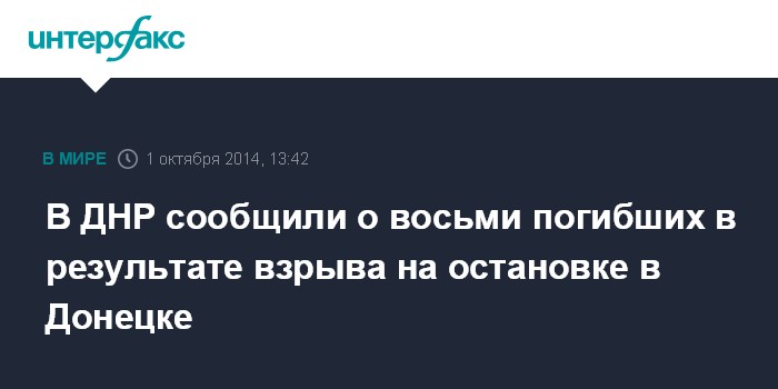 Москва. 1 октября. INTERFAX.RU - В Донецке на Киевском проспекте в остановку попала мина, выпущенная с позиции украинских военных. В результате погибли восемь человек, заявили журналистам в пресс-центре самопровозглашенной Донецкой народной республики.