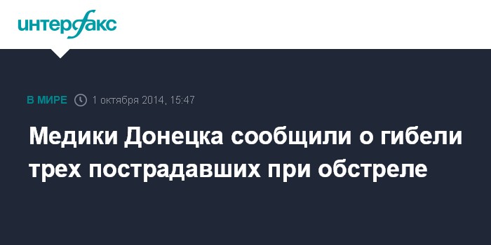 Медики Донецка сообщили о гибели трех пострадавших при обстреле