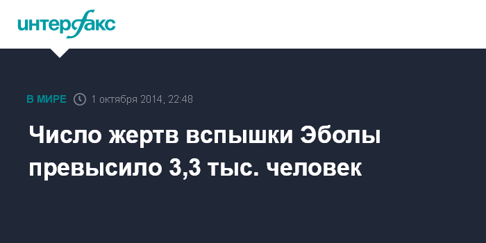 Москва. 1 октября. INTERFAX.RU - Количество жертв вируса Эбола достигло 3338 человек, сообщили в среду во Всемирной организации здравоохранения (ВОЗ).