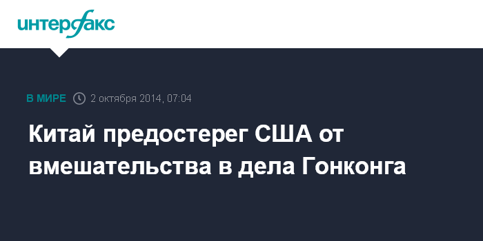 "Китайское правительство твердо и четко изложило свою позицию. Происходящее в Гонконге - это внутреннее дело Китая", - сказал он журналистам перед встречей с госсекретарем США Джоном Керри в Вашингтоне.