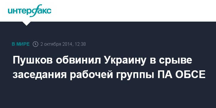 Москва. 2 октября. INTERFAX.RU - Заседание рабочей группы по Украине, которое намечалось провести в рамках сессии Парламентской ассамблеи ОБСЕ в Женеве, срывается по вине украинской делегации, сообщил "Интерфаксу" в четверг глава комитета Госдумы по международным делам Алексей Пушков.