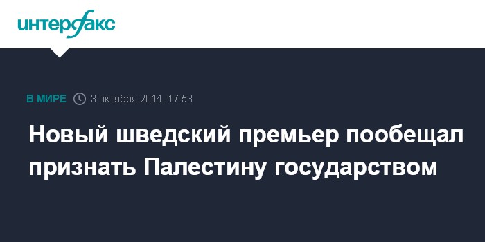 Москва. 3 октября. INTERFAX.RU - Новое правительство Швеции во главе с премьер-министром Стефаном Левеном намерено признать Палестину как государство, пишет в пятницу газета Aftonbladet.