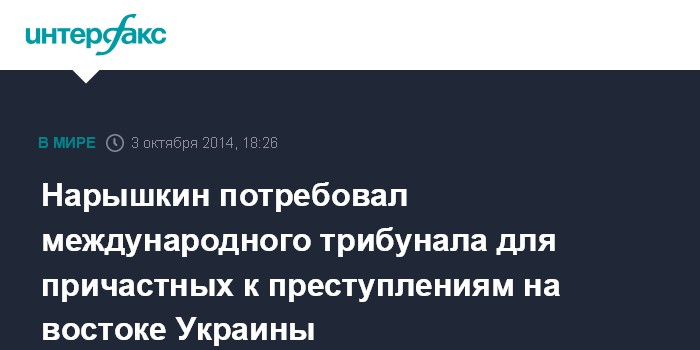 Нарышкин потребовал международного трибунала для причастных к преступлениям на востоке Украины