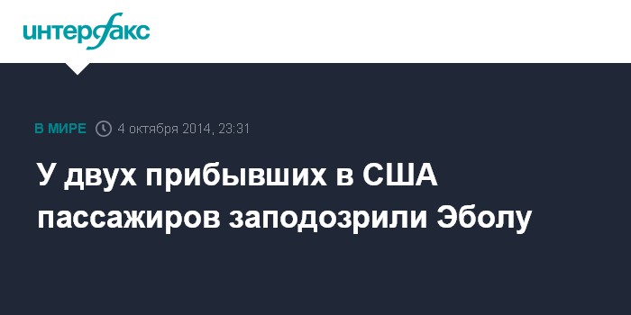 Москва. 4 октября. INTERFAX.RU - Два пассажира самолета авиакомпании United Airlines, совершавшего рейс Брюссель-Ньюарк, штат Нью-Джерси, сразу после посадки были встречены специалистами Центра по контролю и профилактики заболеваний США (CDC) в связи с подозрением на вирус Эболы, сообщает ABC News.