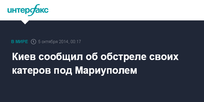 Москва. 5 октября. INTERFAX.RU - Катера береговой охраны Государственной пограничной службы Украины были обстреляны из минометов в субботу в Азовском море неподалеку от Мариуполя (Донецкая область), сообщается в фейсбуке пресс-центра силовой операции.
