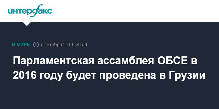 Москва. 5 октября. INTERFAX.RU - Ежегодная Парламентская ассамблея ОБСЕ в 2016 году будет проведена в Грузии, сообщает в воскресенье пресс-служба парламента Грузии.