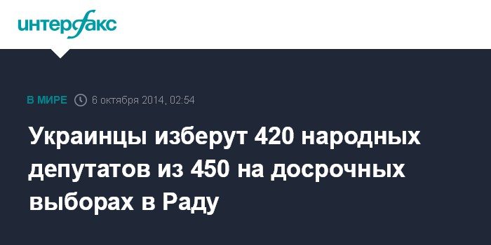 Украинцы изберут 420 народных депутатов из 450 на досрочных выборах в Раду