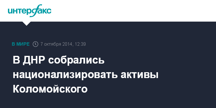 Москва. 7 октября. INTERFAX.RU - Активы украинского предпринимателя и губернатора Днепропетровской области Игоря Коломойского на подконтрольной ДНР территории могут быть национализированы самопровозглашенной республикой.