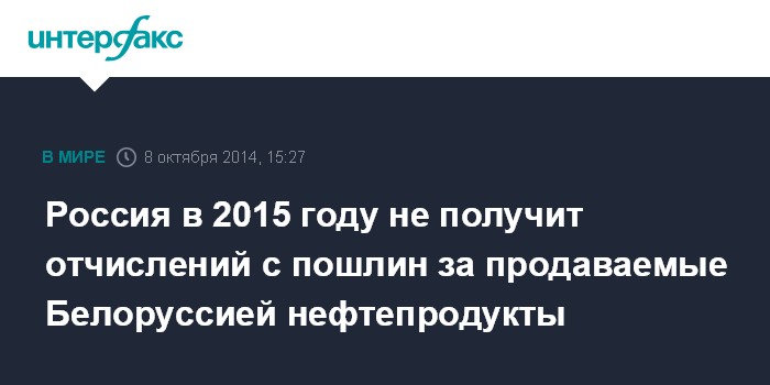 Россия в 2015 году не получит отчислений с пошлин за продаваемые Белоруссией нефтепродукты