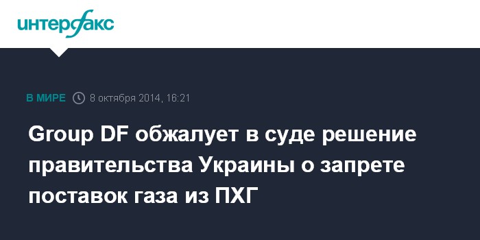 Москва. 8 октября. INTERFAX.RU - Предприятия Group DF, которым принадлежит газ в подземных хранилищах газа (ПХГ) "Укртрансгаза", оспорят постановление кабинета министров о запрете предприятиям-производителям минеральных удобрений использовать газ из ПХГ и газ украинской добычи до окончания осенне-зимнего периода или до особого решения правительства.