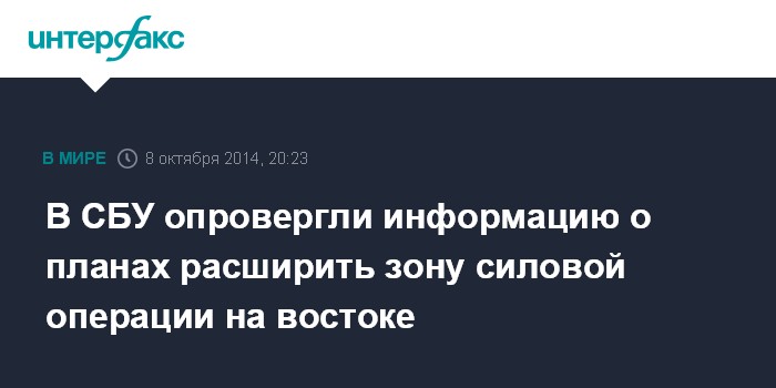 Москва. 8 октября. INTERFAX.RU - Советник главы Службы безопасности Украины Маркиян Лубкивский опроверг информацию о намерениях расширения зоны проведения силовой операции на востоке страны.