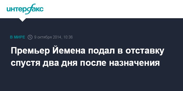 По данным агентства, президент Йемена Абду Рабби Мансур Хади уже ответил согласием на просьбу премьера "освободить его от обязательств по формированию нового правительства". Премьер объяснил свое решение "желанием сохранить национальное единство и избежать разногласий".