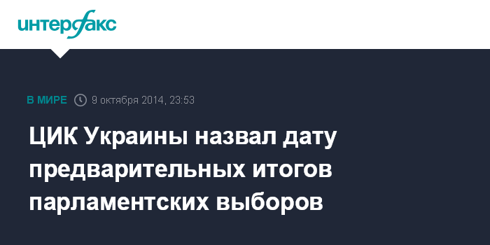 Москва. 9 октября. INTERFAX.RU - Предварительные результаты голосования на внеочередных выборах в Верховную раду Украины можно ожидать 29-30 октября, прогнозирует председатель Центральной избирательной комиссии Украины Михаил Охендовский в интервью "Пятому каналу".