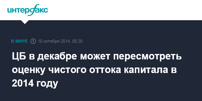 ЦБ в декабре может пересмотреть оценку чистого оттока капитала в 2014 году