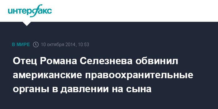 Отец Романа Селезнева обвинил американские правоохранительные органы в давлении на сына
