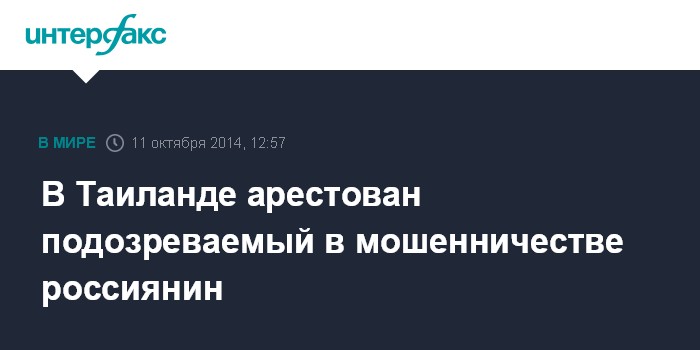 В Таиланде арестован подозреваемый в мошенничестве россиянин