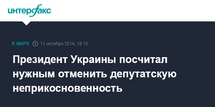 Москва. 11 октября. INTERFAX.RU - Президент Украины Петр Порошенко выступает за отмену депутатской неприкосновенности.