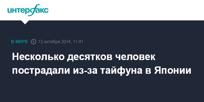 Москва. 12 октября. INTERFAX.RU - Не менее 35 человек пострадали на японских островах Окинава и Кюсю в результате удара тайфуна "Вонгфонг", сообщает агентство Associated Press в воскресенье.