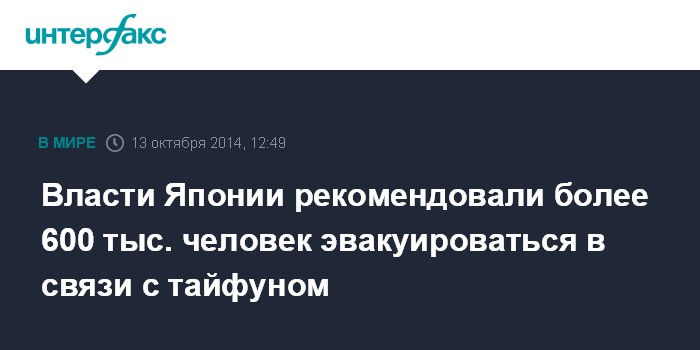 Москва. 13 октября. INTERFAX.RU - Около 505 тыс. жителей японской префектуры Сидзуока получили рекомендацию эвакуироваться в безопасное место из-за тайфуна "Вонгфонг", который двигается с запада на восток страны, сообщается в понедельник на сайте японского издания Mainichi.