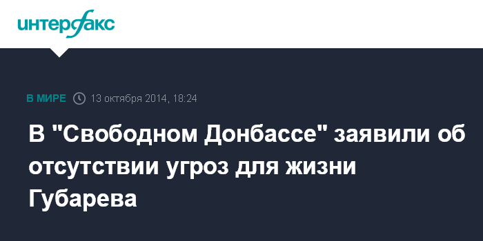 Москва. 13 октября. INTERFAX.RU - Глава движения "Свободный Донбасс" Евгений Орлов сообщил, что жизни бывшего "народного губернатора" самопровозглашенной Донецкой народной республики Павла Губарева, получившего травмы в результате покушения, ничего не угрожает.