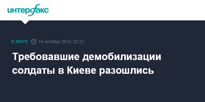 Москва. 14 октября. INTERFAX.RU - Солдаты срочной службы, которые пикетировали администрацию президента Украины, покинули улицу Банковую в центре Киева и направились в свои части.