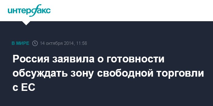 Россия заявила о готовности обсуждать зону свободной торговли с ЕС