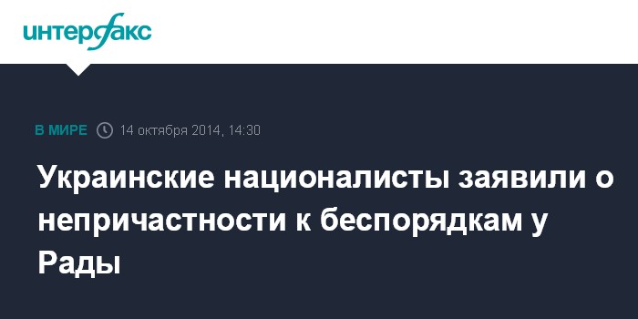 Москва. 14 октября. INTERFAX.RU - В украинской националистической партии "Свобода" заявляют о непричастности к провокациям, происходящим в Киеве у здания Верховной рады во вторник.
