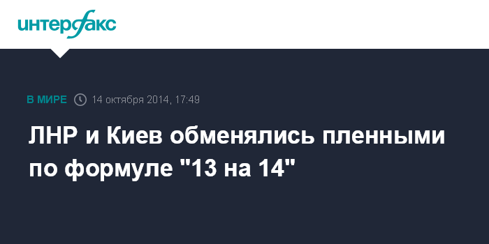 Москва. 14 октября. INTERFAX.RU - Ополченцы ЛНР сообщают об обмене пленными с украинской стороной в формате 13 на 14.