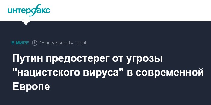 Москва. 15 октября. INTERFAX.RU - "Вакцина" от нацизма, выработанная в послевоенной Европе, начинает терять силу. Об этом президент РФ Владимир Путин заявил в интервью сербской газете "Политика".