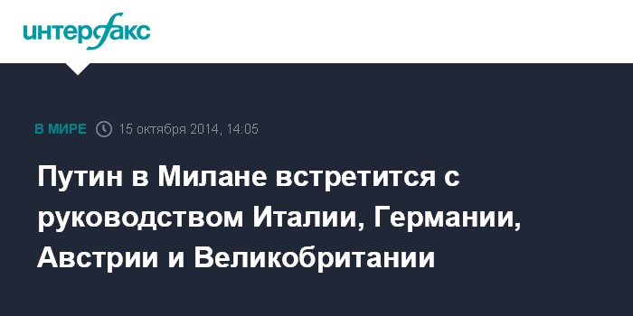 Путин в Милане встретится с руководством Италии, Германии, Австрии и Великобритании