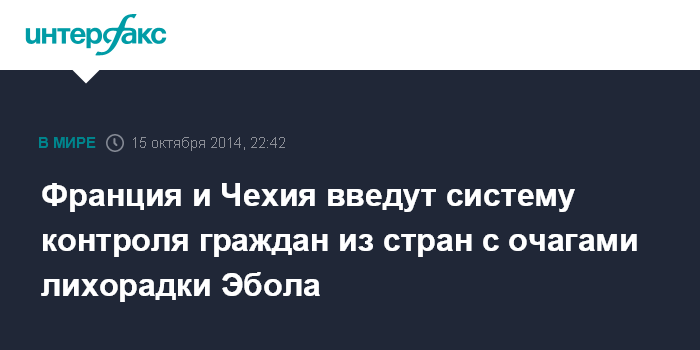 Москва. 15 октября. INTERFAX.RU - Пассажиры, прибывающие из стран, затронутых вирусом Эбола, будут проходить специальный медицинский осмотр в аэропортах Франции и Чехии на предмет выявления этой болезни, сообщили в среду западные СМИ.
