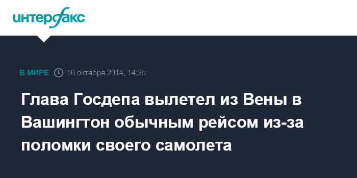 Москва. 16 октября. INTERFAX.RU - Госсекретарь США Джон Керри на этой неделе вынужден был вылететь из Вены в Вашингтон коммерческим рейсом в связи с поломкой своего самолета, пишут в четверг американские СМИ.