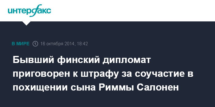Бывший финский дипломат приговорен к штрафу за соучастие в похищении сына Риммы Салонен