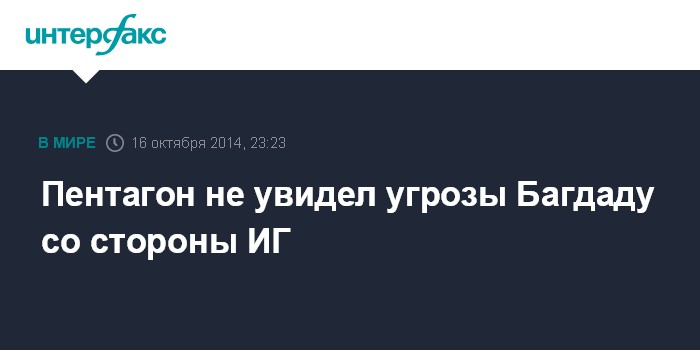 Москва. 16 октября. INTERFAX.RU - В минобороны США не считают, что боевики из радикальной группировки "Исламское государство" (ИГ) представляют собой угрозу иракской столице Багдаду. Об этом журналистам заявил в четверг представитель военного ведомства контр-адмирал Джон Кирби.