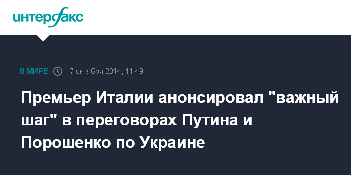 Москва. 17 октября. INTERFAX.RU - Премьер Италии Маттео Ренци заявляет о достижении важных результатов в дискуссии по Украине.