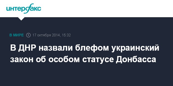 В ДНР назвали блефом украинский закон об особом статусе Донбасса