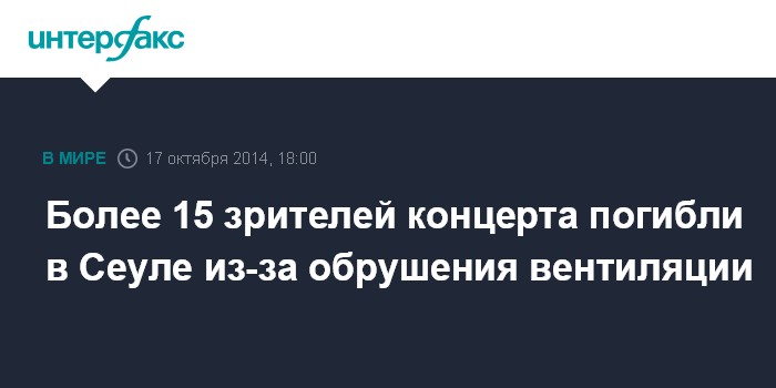 Более 15 зрителей концерта погибли в Сеуле из-за обрушения вентиляции