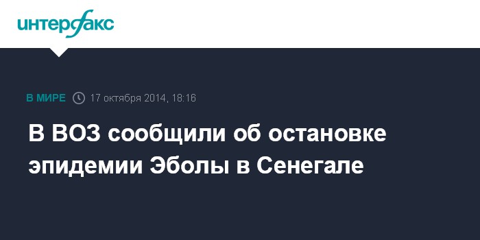 В ВОЗ сообщили об остановке эпидемии Эболы в Сенегале
