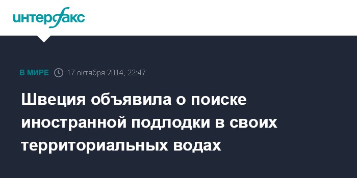 Москва. 17 октября. INTERFAX.RU - Военное командование Швеции объявило о начале широкомасштабной операции по поиску иностранной подводной лодки в своих территориальных водах. Об этом сообщает AP.