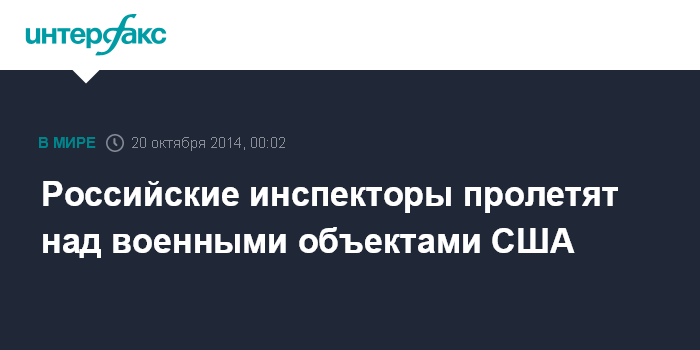 Москва. 20 октября. INTERFAX.RU - Российская группа инспекторов в период с 20 по 25 октября планирует выполнить наблюдательный полет над территорией США в рамках реализации международного Договора по открытому небу (ДОН).